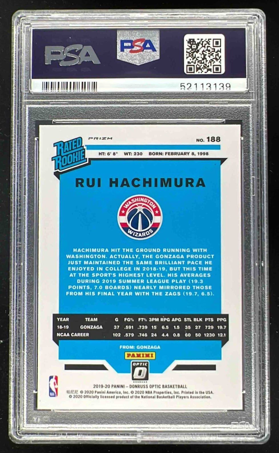 2019-20 Panini Donruss Optic Holo #188 Rui Hachimura RC PSA 10