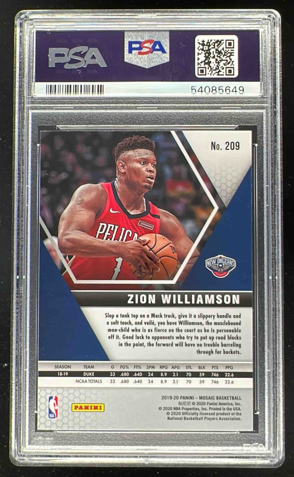 2019-20 Panini Mosaic #209b Zion Williamson RC VAR PSA 10