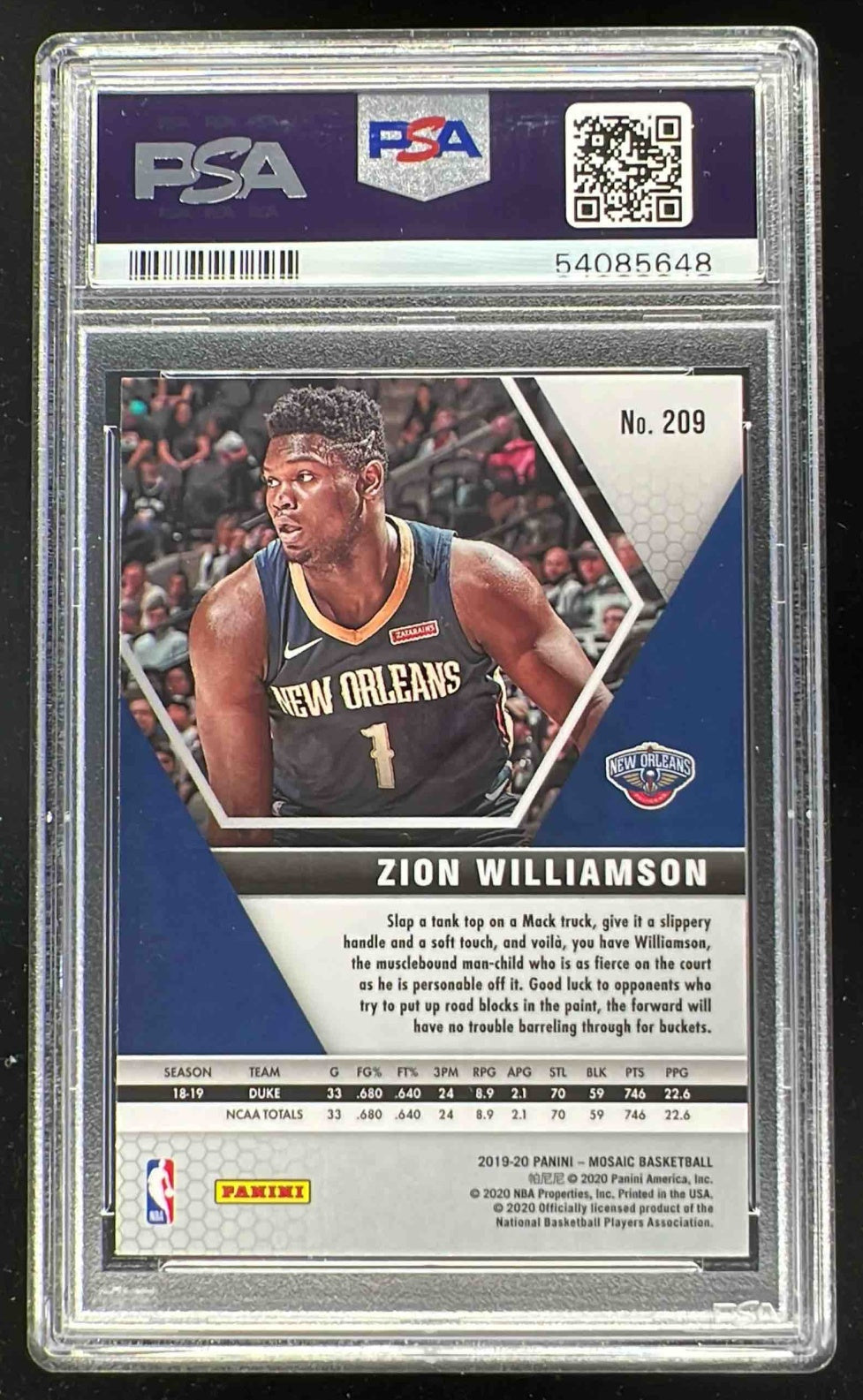 2019-20 Panini Mosaic #209 Zion Williamson RC PSA 10