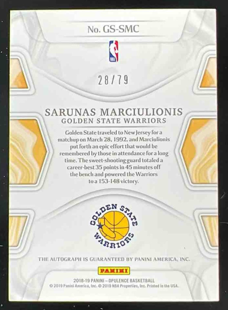 2018-19 Panini Opulence Gilded Sigs #GS-SMC Sarunas Marciulionis Auto /79
