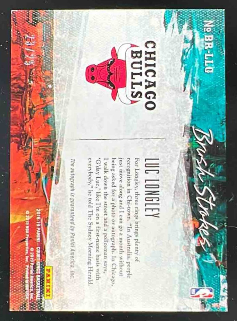 2018-19 Panini Court Kings Brush Strokes Sapphire #BR-LLG Luc Longley Auto /25