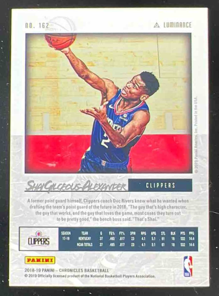 2018-19 Panini Chronicles #162 Shai Gilgeous-Alexander RC Luminance