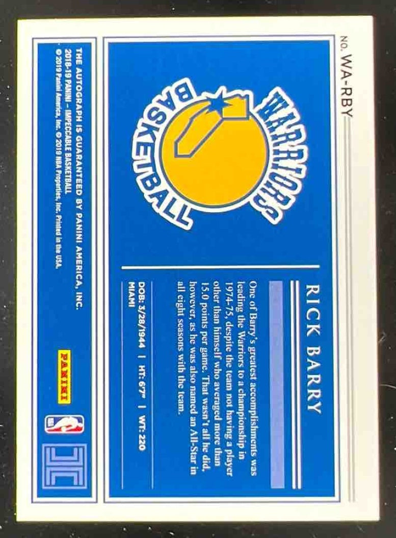 2018-19 Panini Impeccable Impeccable Warriors #WA-RBY Rick Barry Auto /49