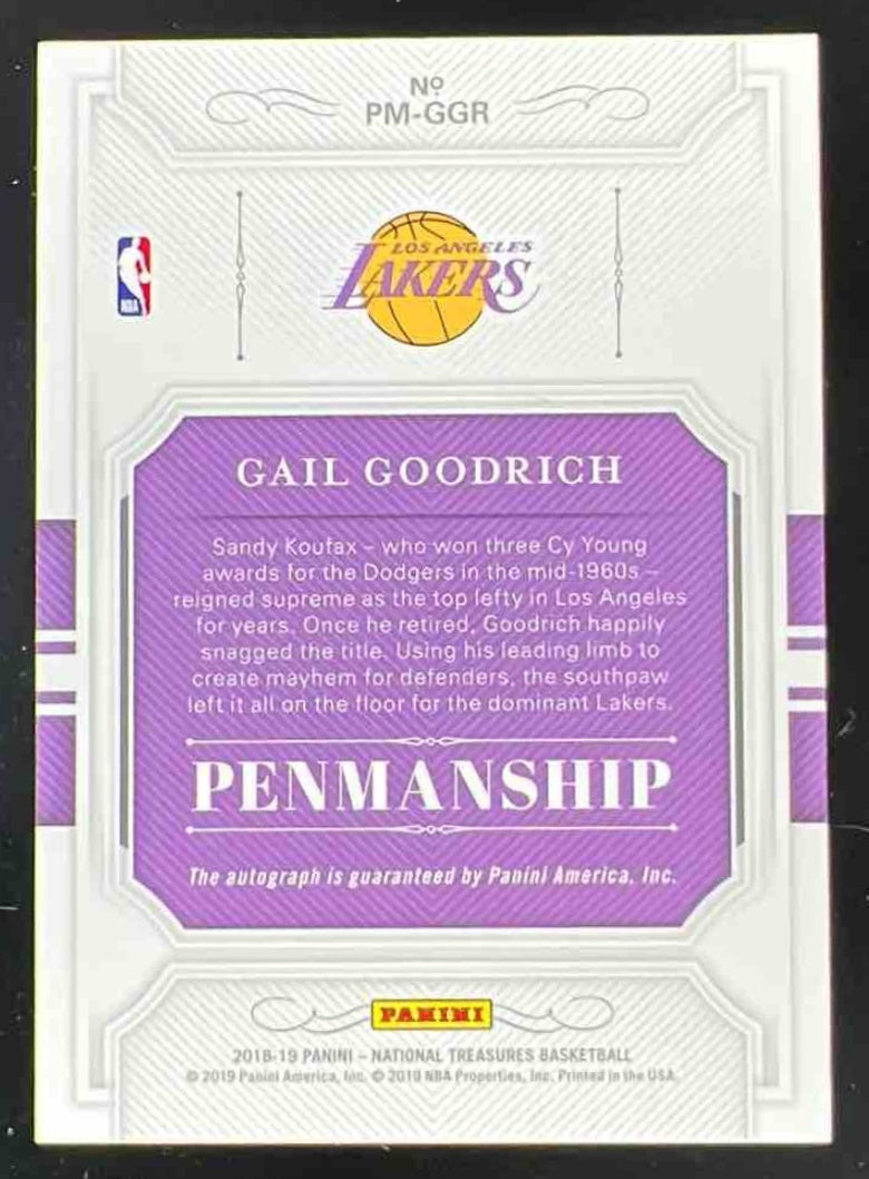 2018-19 Panini National Treasures Penmanship #PM-GGR Gail Goodrich Auto /99