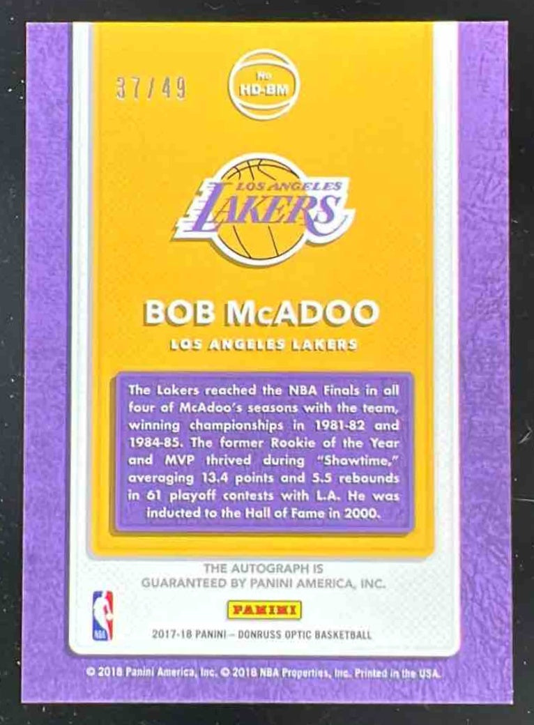 2017-18 Donruss Optic Hall Dominator Signatures #HD-BM Bob McAdoo Auto /49