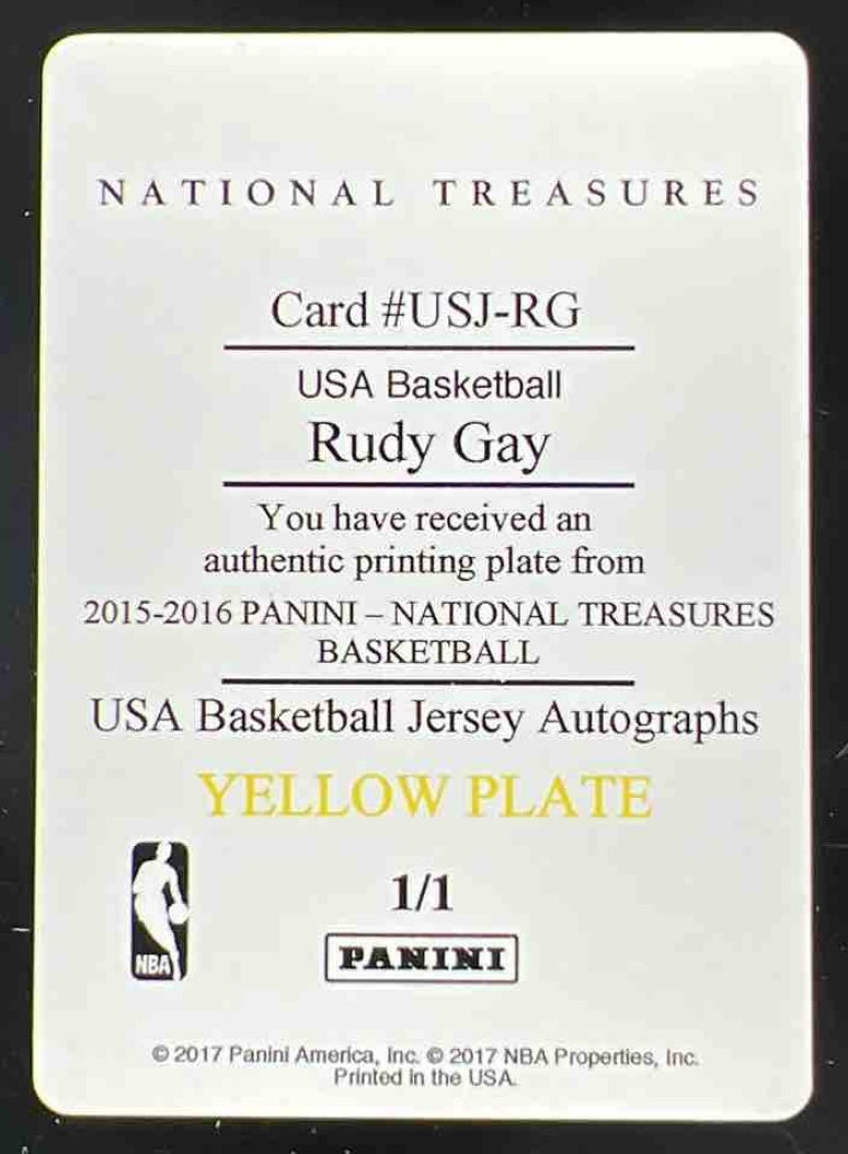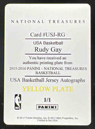 2015 National Treasures Printing Plate Yellow #USJ-RG Rudy Gay 1/1
