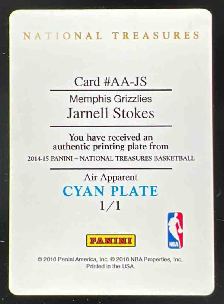 2014-15 Panini National Treasures Air Apparent Printing Cyan Jarnell Stokes 1/1