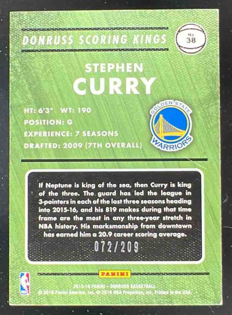 2015-16 Panini Donruss Scoring Kings Statline #38 Stephen Curry /209