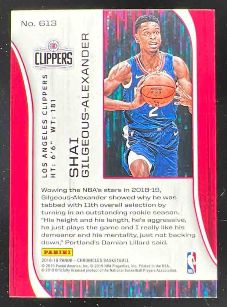 2018-19 Panini Chronicles #613 Shai Gilgeous-Alexander Rookie & Stars RC