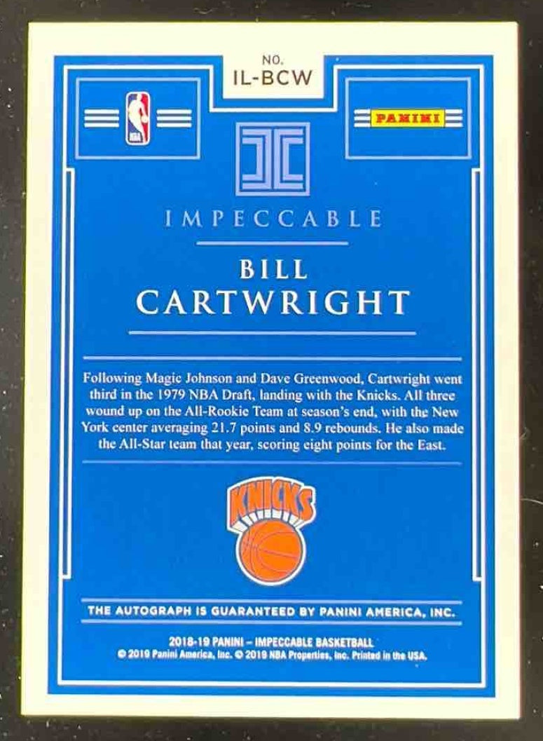 2018-19 Impeccable Illustrious Ink Holo Silver #IL-BCW Bill Cartwright Auto /25