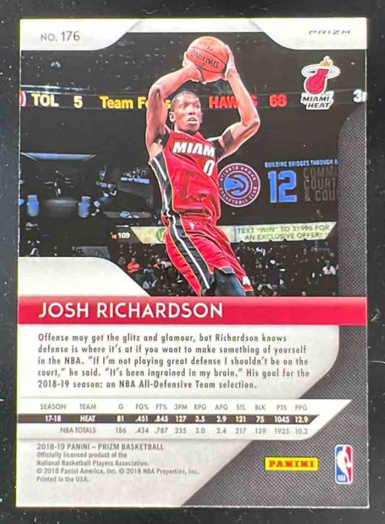 2018-19 Panini Prizm Prizms Choice Tiger Stripe #176 Josh Richardson