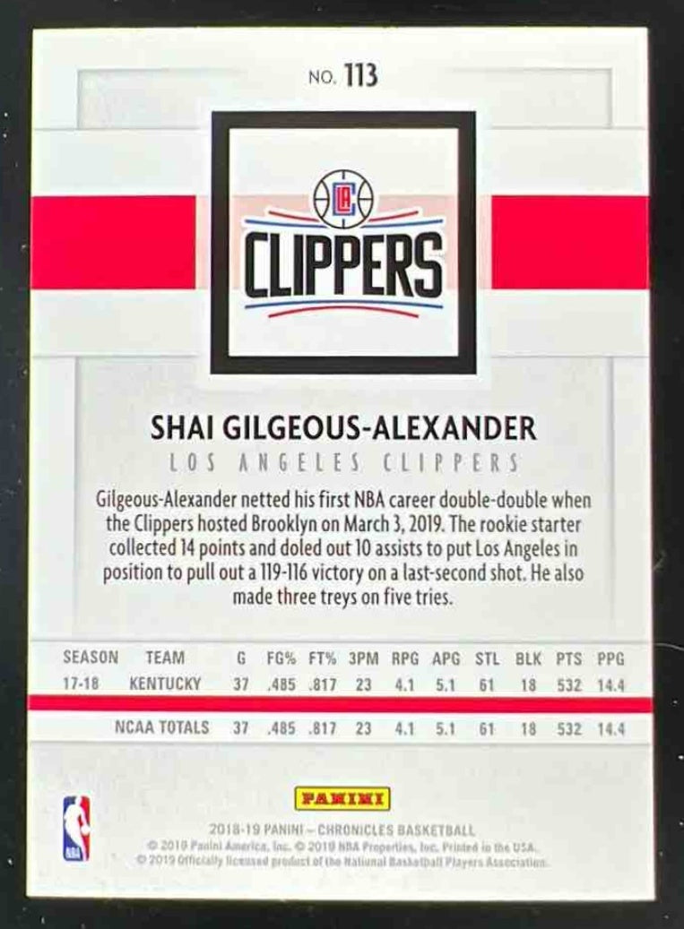 2018-19 Panini Chronicles #113 Shai Gilgeous-Alexander RC