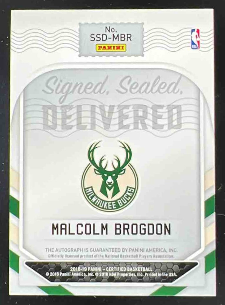 2018-19 Certified Signed Sealed Delivered Gold #SSD-MBR Malcolm Brogdon Auto /10
