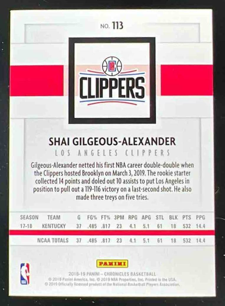 2018-19 Panini Chronicles #113 Shai Gilgeous-Alexander RC