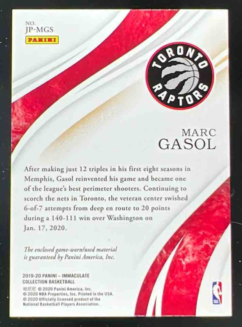 2019-20 Immaculate Collection Jumbo Patches Jersey Number #JP-MGS Marc Gasol /11