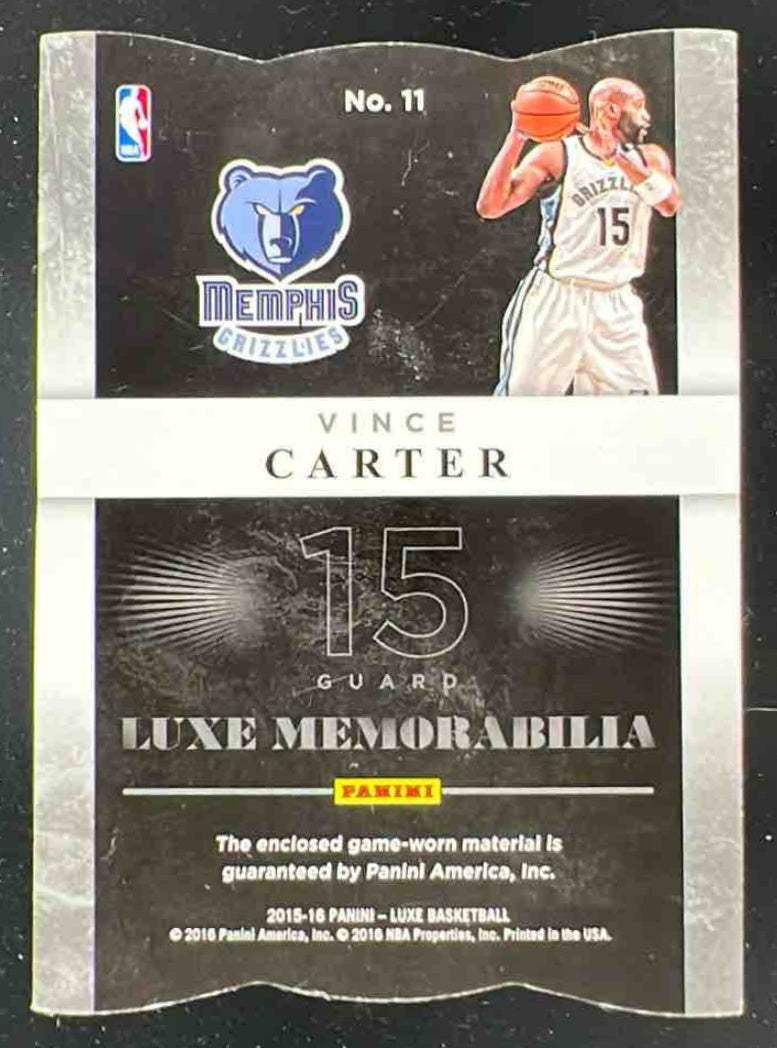 2015-16 Panini Luxe Memorabilia Die Cuts Blue #11 Vince Carter /25
