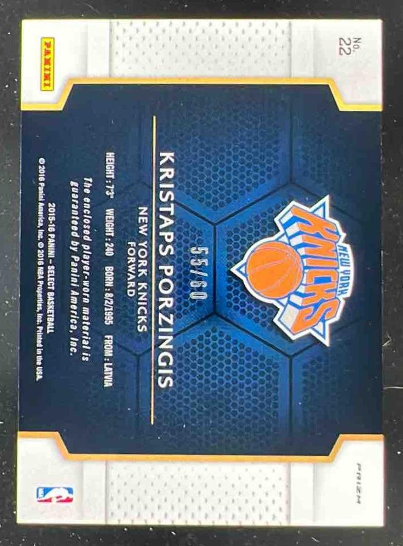 2015-16 Select Swatches Rookie Orange Prizms #22 Kristaps Porzingis RC /60
