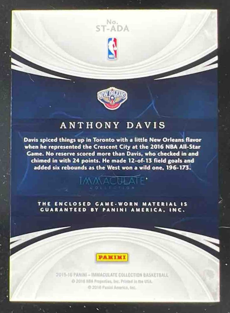 2015-16 Immaculate Collection Immaculate Standard #ST-ADA Anthony Davis /75
