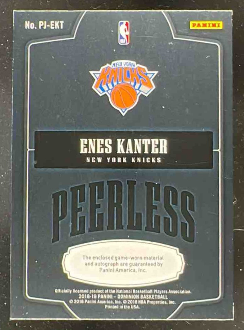 2018-19 Dominion Peerless Jersey Autographs Silver #PJ-EKT Enes Kanter Auto /15