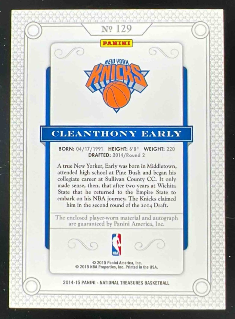2014-15 Panini National Treasures #129 Cleanthony Early RC Auto /99