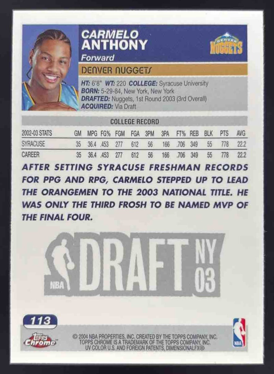 2003-04 Topps Chrome #113 Carmelo Anthony RC