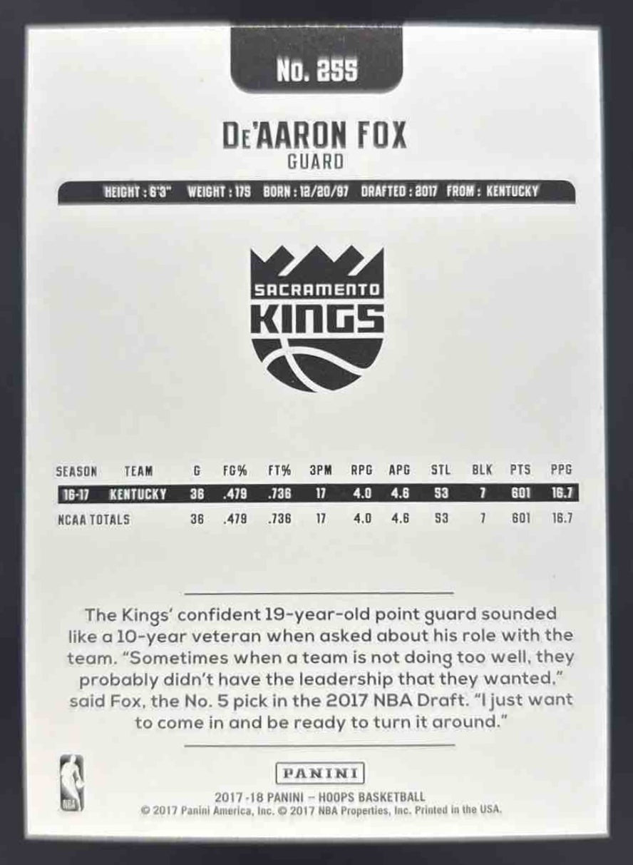 2017-18 Panini Hoops Teal Explosion #255 De Aaron Fox RC