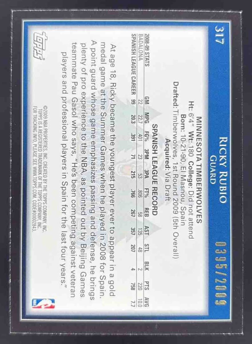 2009-10 Topps Gold #317 Ricky Rubio RC /2009