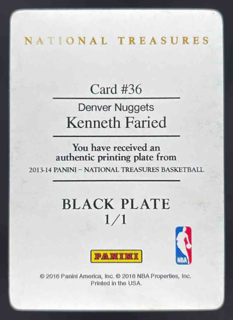 2013-14 Panini National Treasures Printing Plate Black #36 Kenneth Faried 1/1