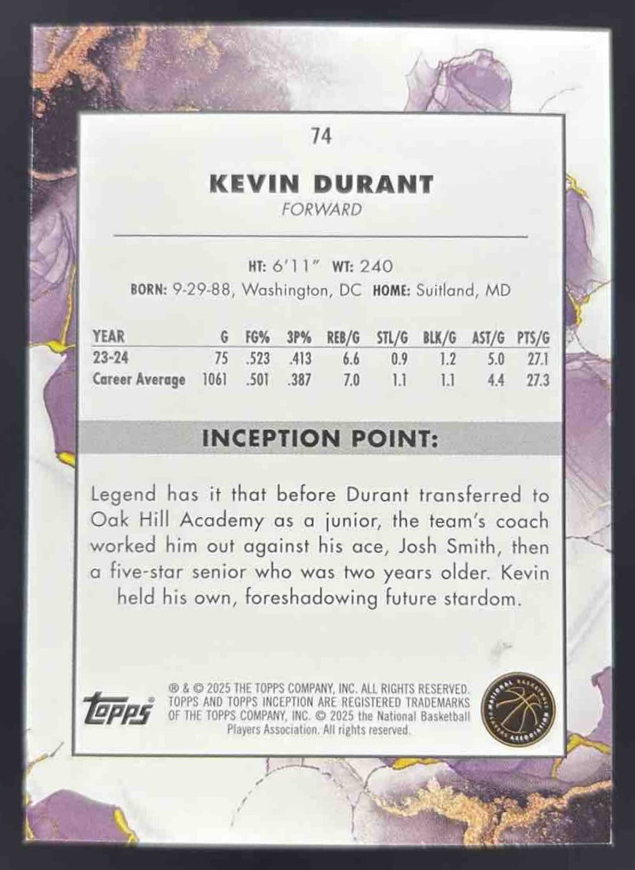 2024-25 Topps Inception Holo Gold #74 Kevin Durant /50