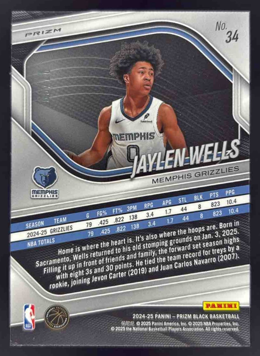 2024-25 Panini Prizm Black Purple Prizms #34 Jaylen Wells RC /99