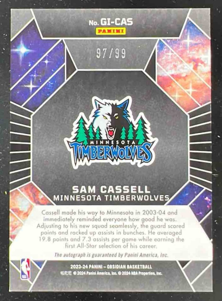 2023-24 Panini Obsidian Galaxy Ink #GI-CAS Sam Cassell Autograph Auto /99