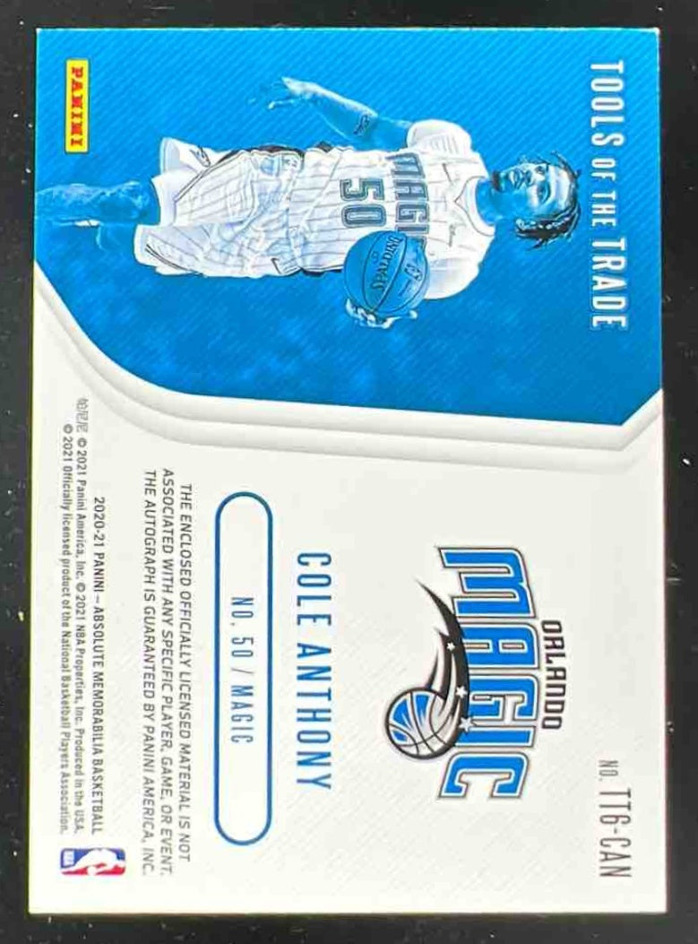 2020 Absolute Memorabilia TOTT Six Swatch Level 1 Cole Anthony RC Auto /199