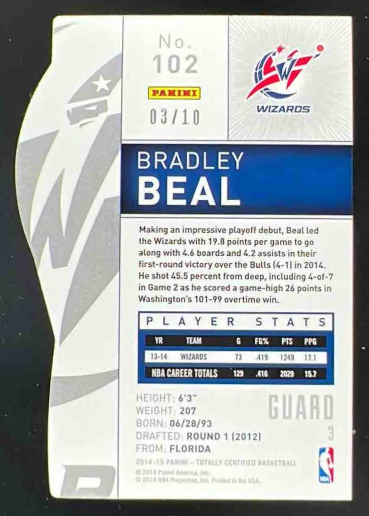 2014-15 Totally Certified Platinum Mirror Gold Die Cuts #102 Bradley Beal /10