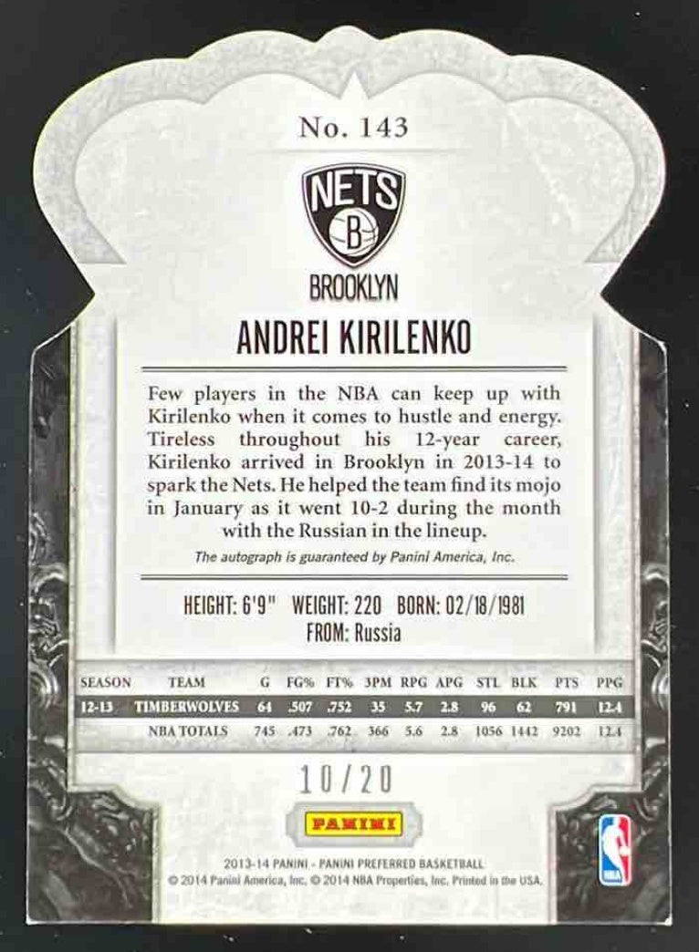 2013-14 Panini Preferred #143 Andrei Kirilenko Crusade Autograph Auto /20