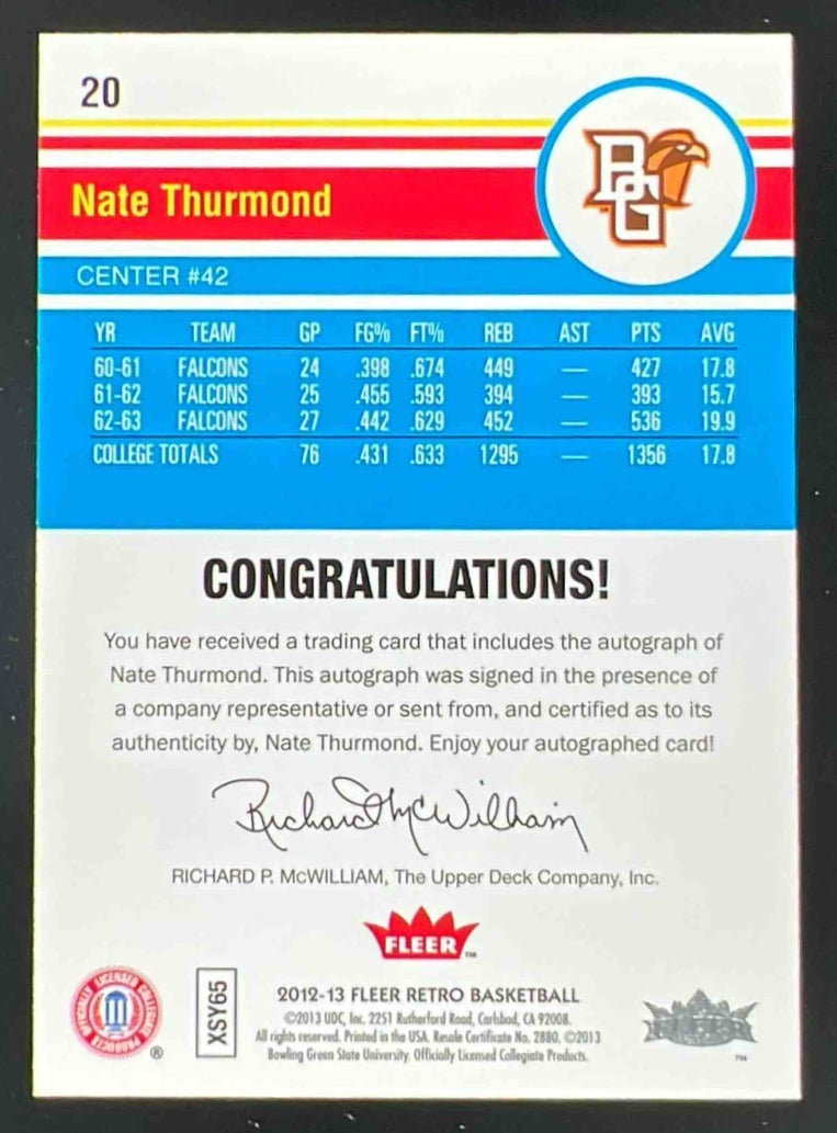 2012-13 Fleer Retro Autographs #20 Nate Thurmond Auto