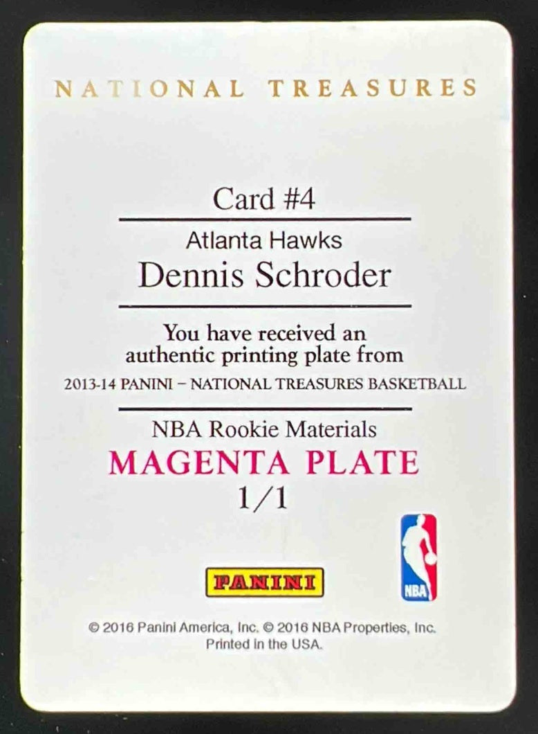 2013 National Treasures Printing Plate Magenta #4 Dennis Schroder 1/1