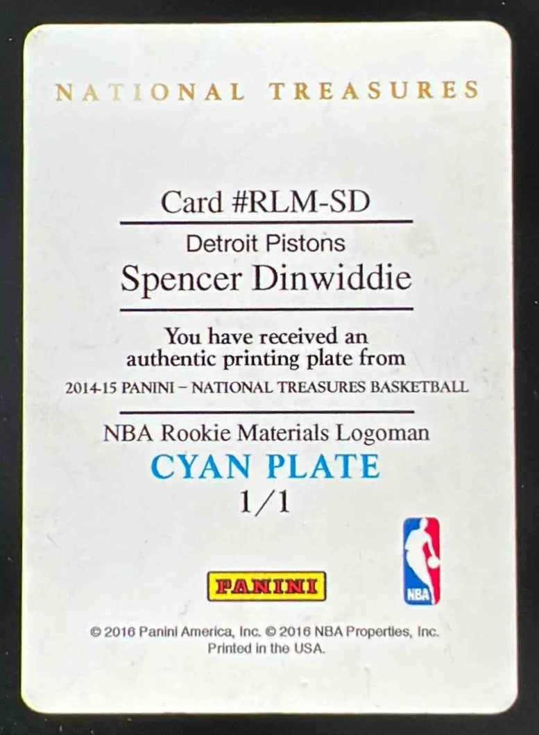 2014 National Treasures Printing Plate Cyan #RLM-SD Spencer Dinwiddie 1/1
