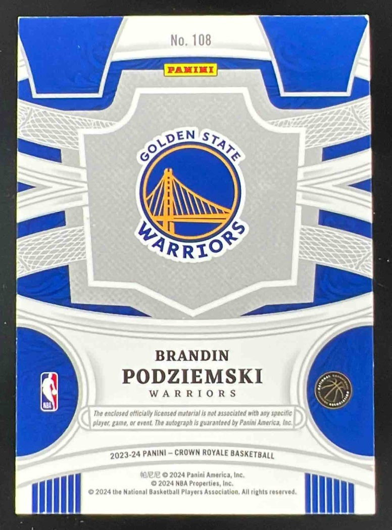 2023-24 Crown Royale #108 Brandin Podziemski RC Rookie Silhouette Auto /125