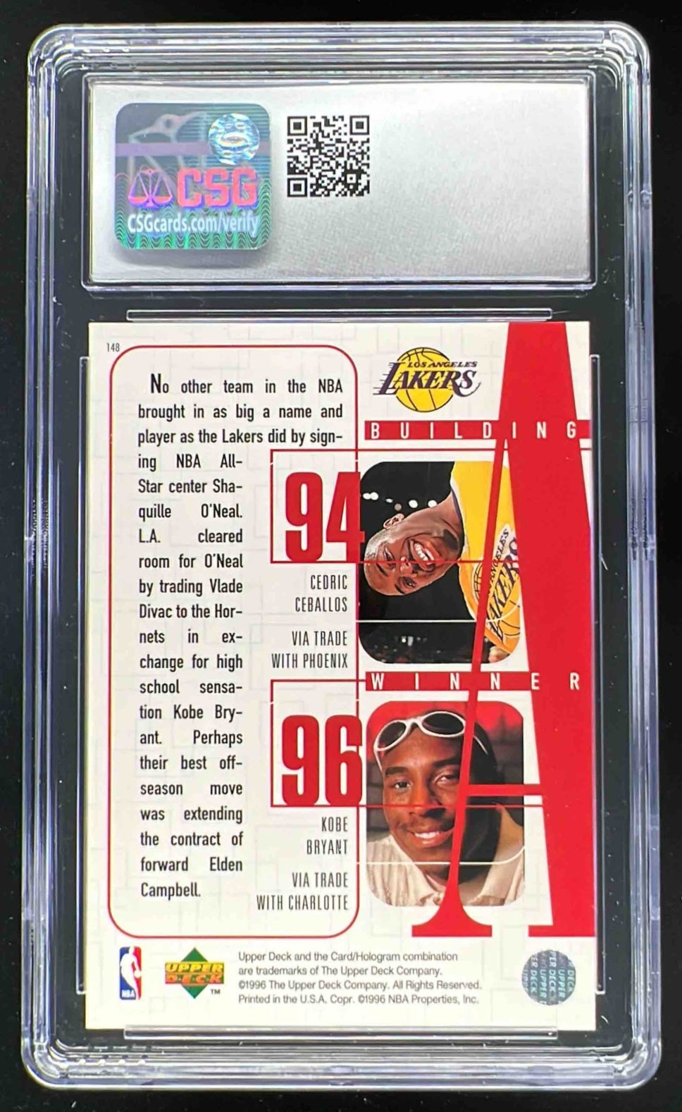 1996-97 Upper Deck O'Neal Jones Van Exel Ceballos Kobe Bryant CSG 10