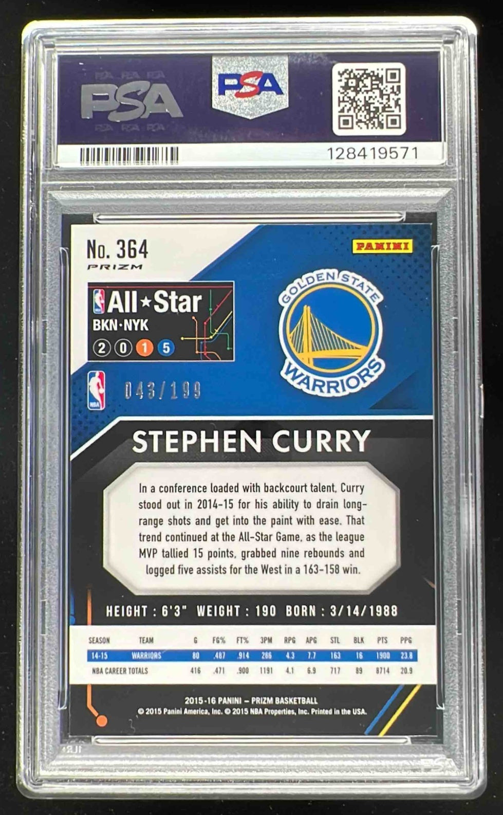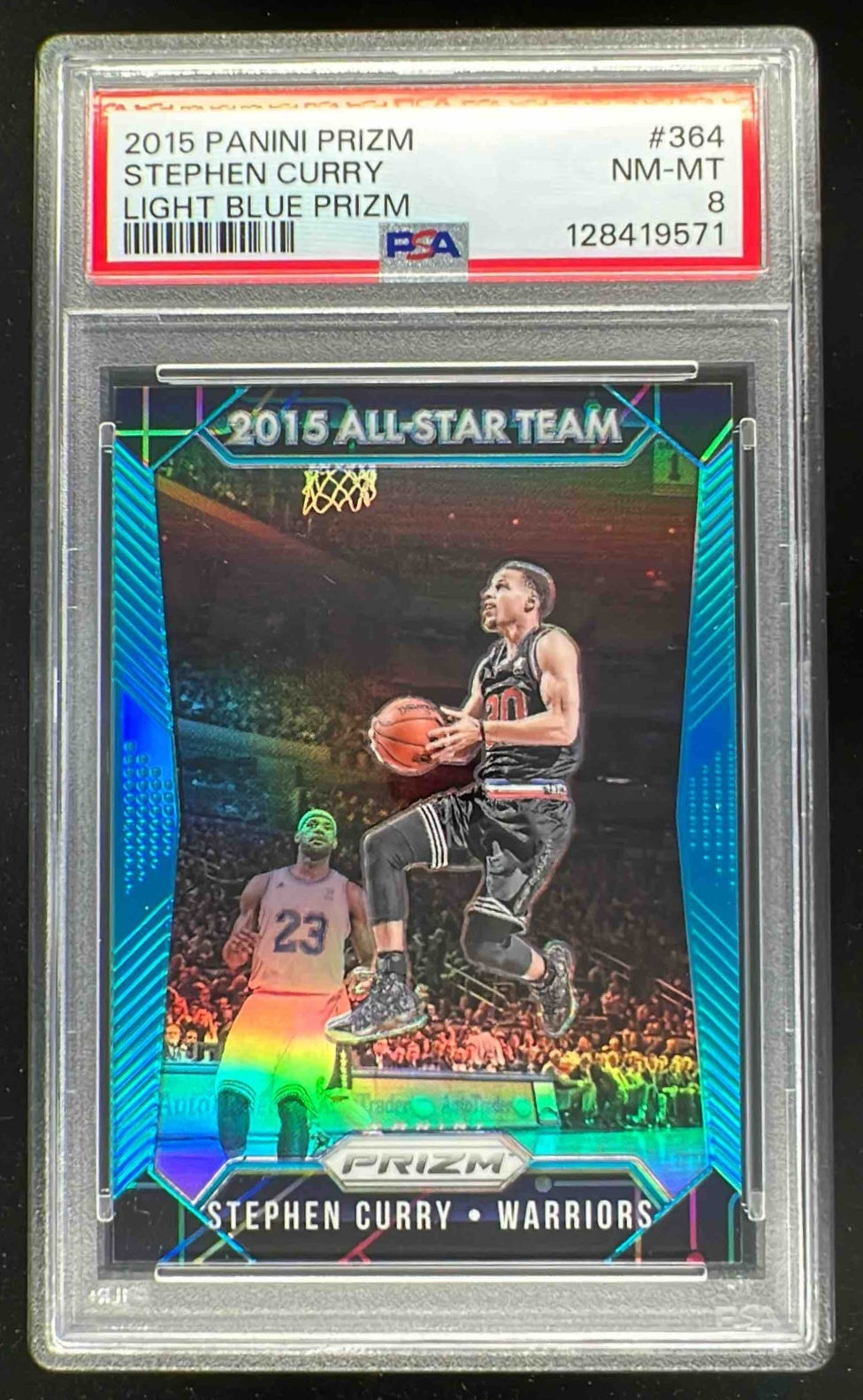 2015-16 Panini Prizm Light Blue Prizms #364 Stephen Curry /199 PSA 8