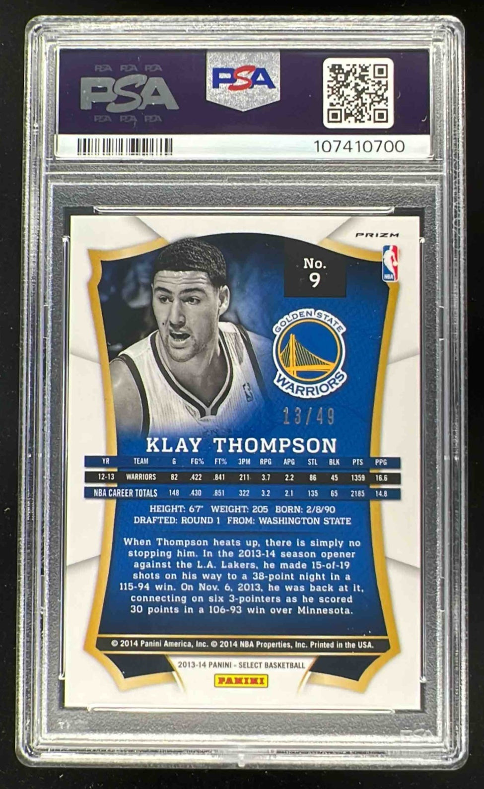 2013-14 Panini Select Prizms Blue #9 Klay Thompson /49 PSA 10