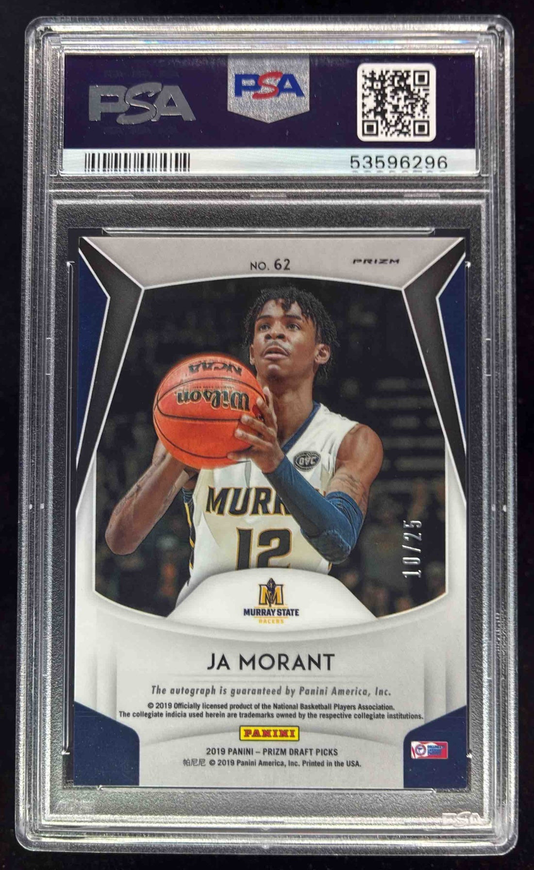 2019-20 Panini Prizm Draft Prizms Camo #62 Ja Morant Autograph RC Auto /25 PSA 9