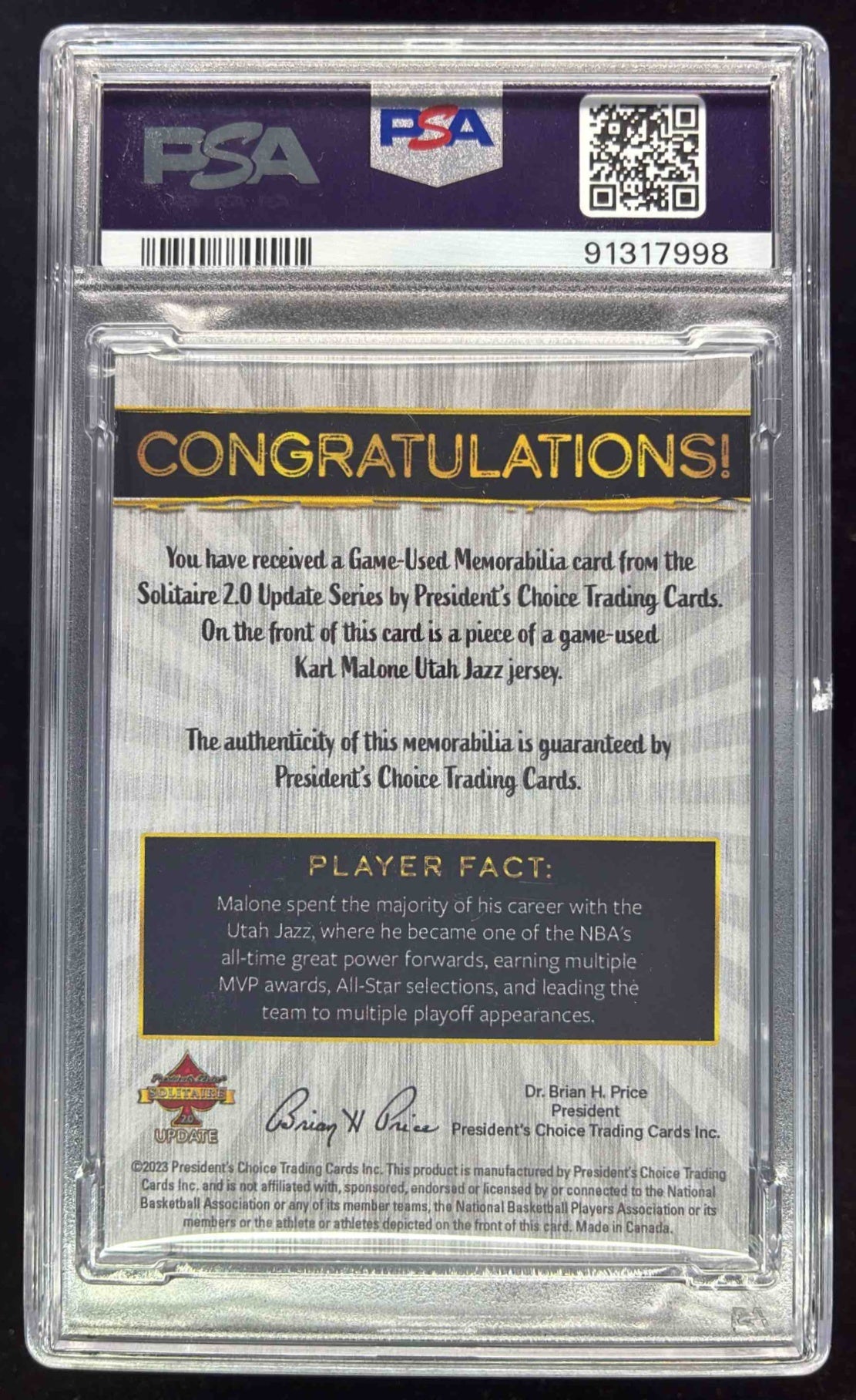 2023 Solitaire 2.0 Update Game Used Memorabilia Yellow Karl Malone 1/1 PSA 10