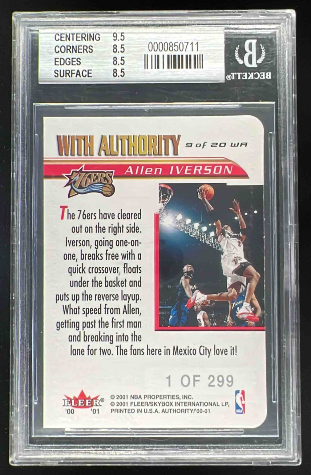 2000-01 Fleer Authority With Authority #WA9 Allen Iverson /299 BGS 8.5