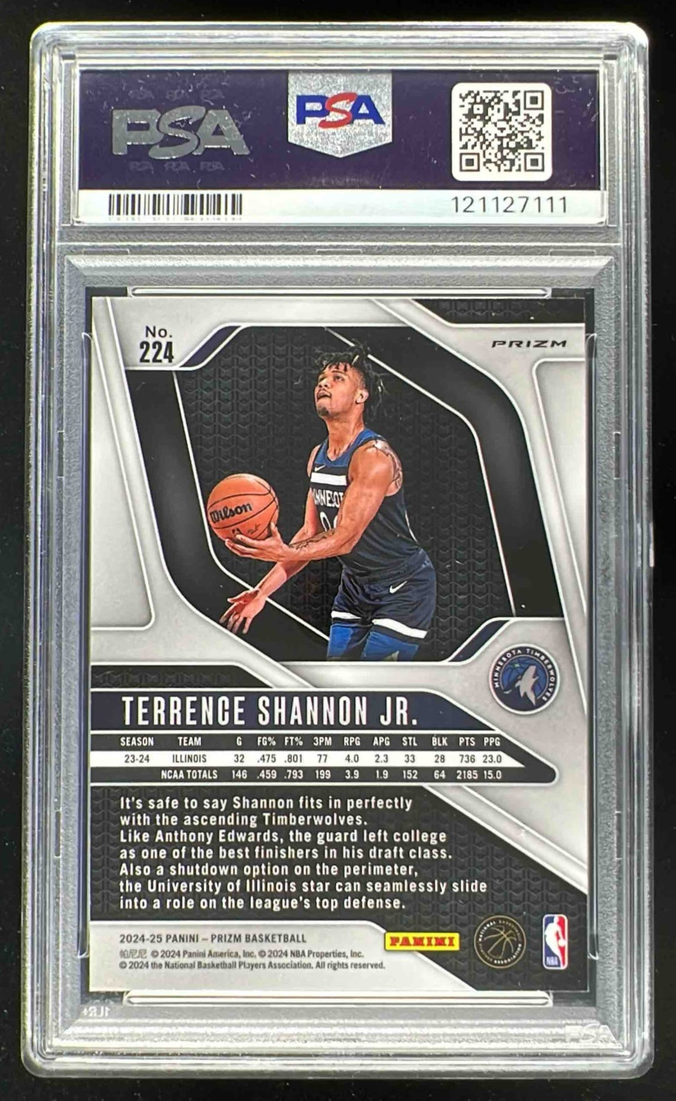 2024-25 Panini Prizm Black White Prizm #224 Terrence Shannon Jr. RC PSA 9