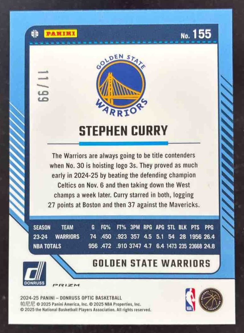 2024-25 Panini Donruss Optic Fast Break Purple #155 Stephen Curry /99