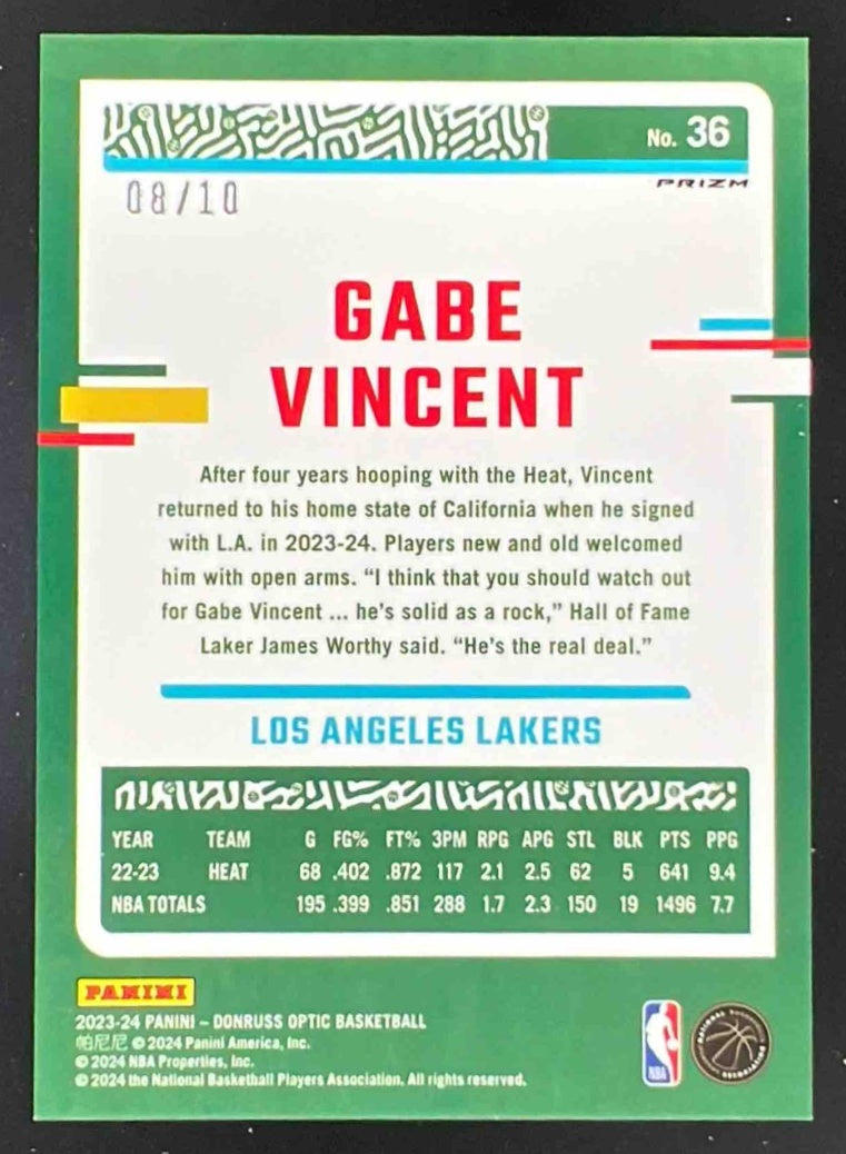 2023-24 Panini Donruss Optic Gold Prizm #36 Gabe Vincent /10