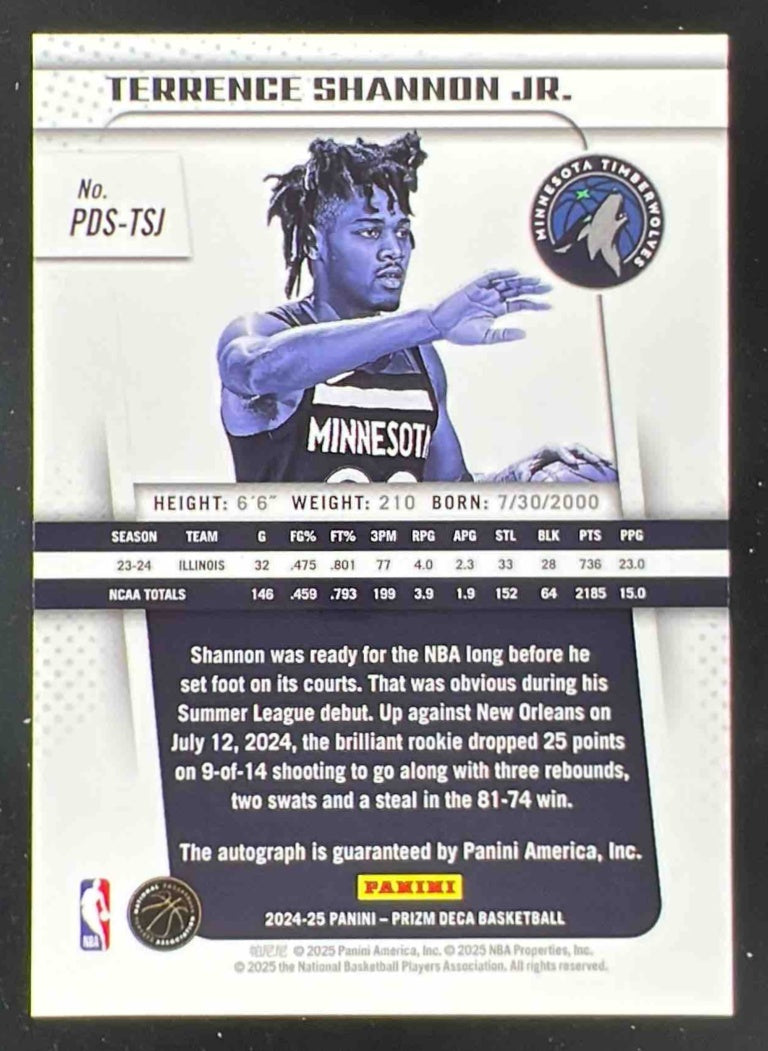 2024-25 Panini Prizm Deca Signatures #PDS-TSJ Terrence Shannon Jr. RC Auto
