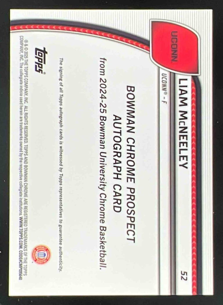 2024-25 Bowman University Chrome Green Shimmer Refractor #52 Liam McNeeley Auto
