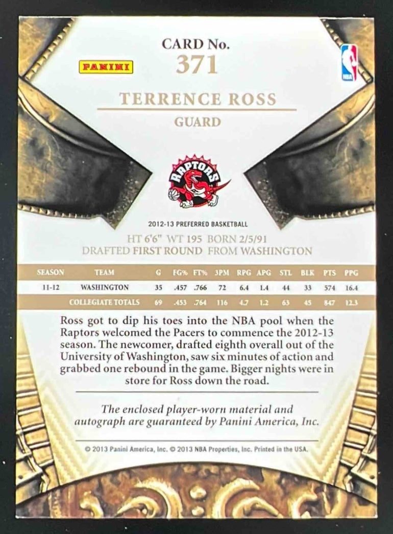 2012-13 Panini Preferred Crown Royale #371 Terrence Ross Autograph RC Auto /99